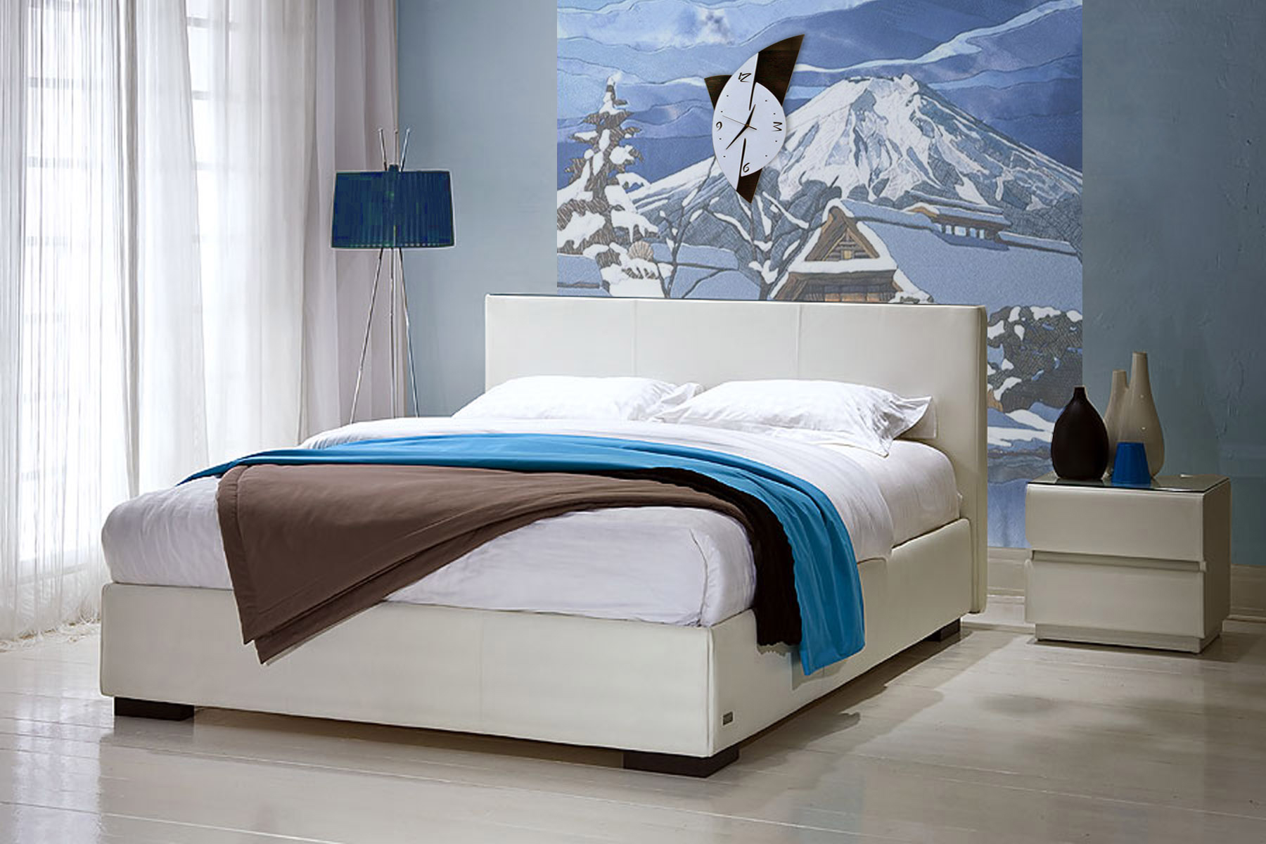 Данная кровать может быть выполнена в комбинированной отделке из искуственной и натуральной кожи или в различных цветовых вариантах.
