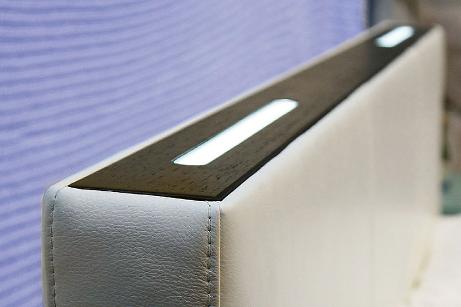 В кровати Сиена простые и лаконичные формы дополнены светодиодными светильниками в декоративной панели на верхней части спинки. Кровать прекрасно подчеркнёт изысканный вкус хозяев.