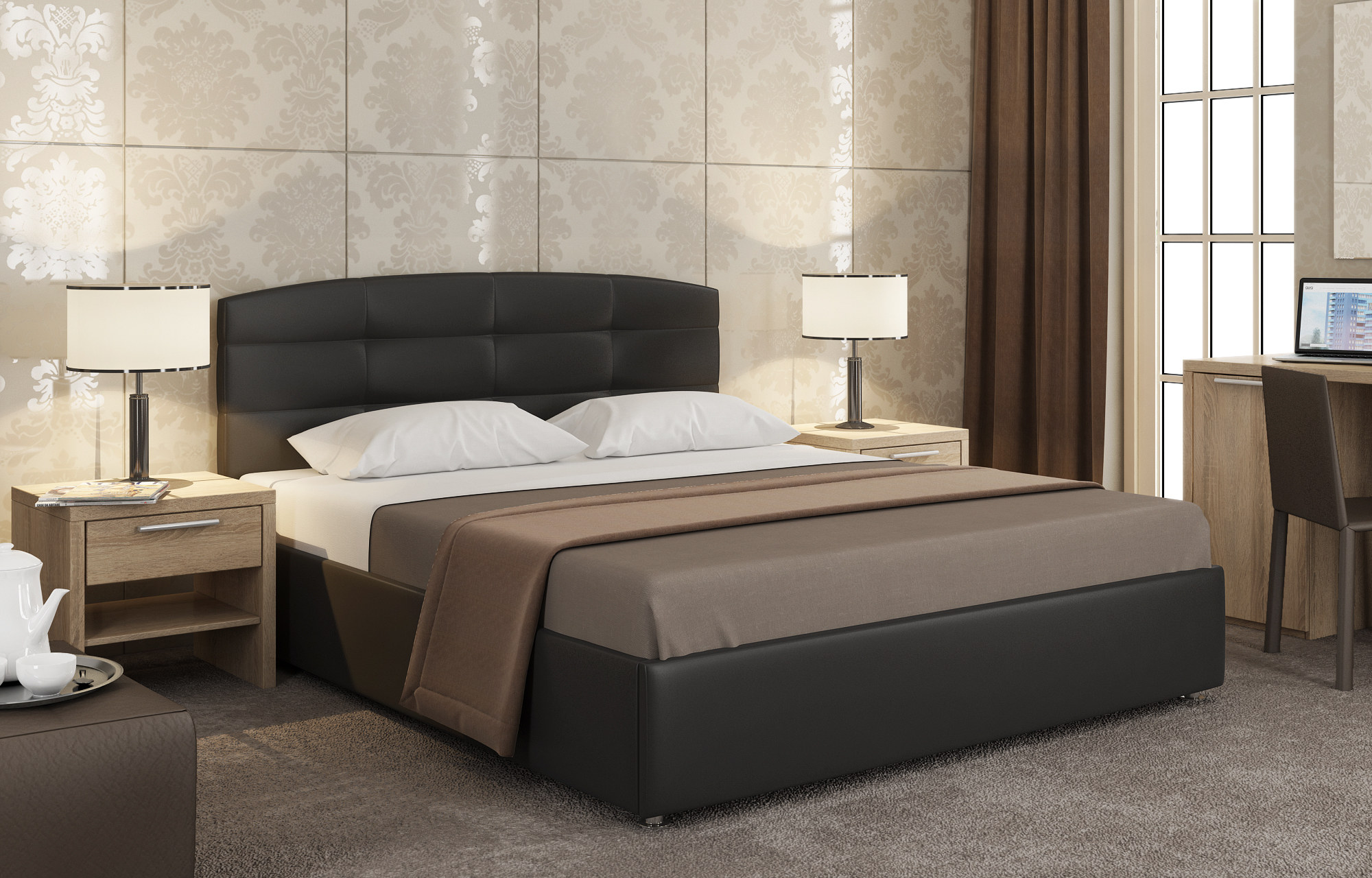 Кровать Mishel. Легкая и белоснежная, внесет в вашу спальню ноты свежести и роскоши. Кровать представлена в обивке из современного экологичного кожзама “Ideal” - она приятна на ощупь - мягкая, эластичная, не выцветает со временем, долговечна, неаллергенна, пропускает воздух, а хромированные ножки отлично дополняют внешний вид изделия.