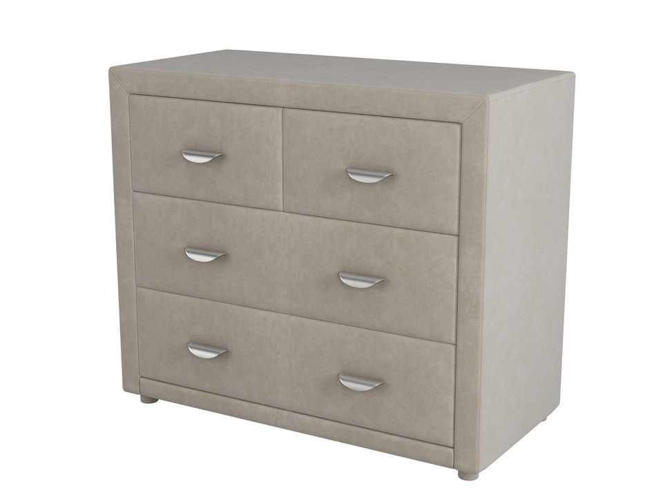 Комод оборудован четырьмя выдвижными ящиками. Каркас и фасады ящиков полностью покрыты обивочным материалом. Комод Verda разработан специально для одноименных спальных систем. Модель выпускается в 4 различных вариантах обивки, сочетающихся с обивкой изголовий и оснований. В комплекте с комодом поставляется 3 комплекта ножек, есть возможность выбрать наиболее подходящий именно вам: 3,5 см хром, 3,5 см обтянутые тканью и 5 см обтянутые тканью.