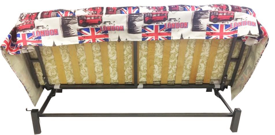 Может использоваться в трех положениях – сидя, лежа и полусидя-полулежа. К тому же, он очень легко раскладывается, а место для сна получается удобным, ровным, без впадины. Для того чтобы его разложить нужно только поднять основание до щелчка, при этом спинка примет горизонтальное положение, остаётся только опустить сиденье и ровное спальное место готово. Механизм трансформации выдерживает частые нагрузки, поэтому подходит для ежедневного использования. На прочный металлический каркас закреплены деревянные ламели, которые не только надёжно удерживают матрас, но и обеспечивают необходимый ортопедический эффект и делают отдых более комфортным. Упругий наполнитель пенополиуретан обтянут тканевым съёмным чехлом, который легко стирается.