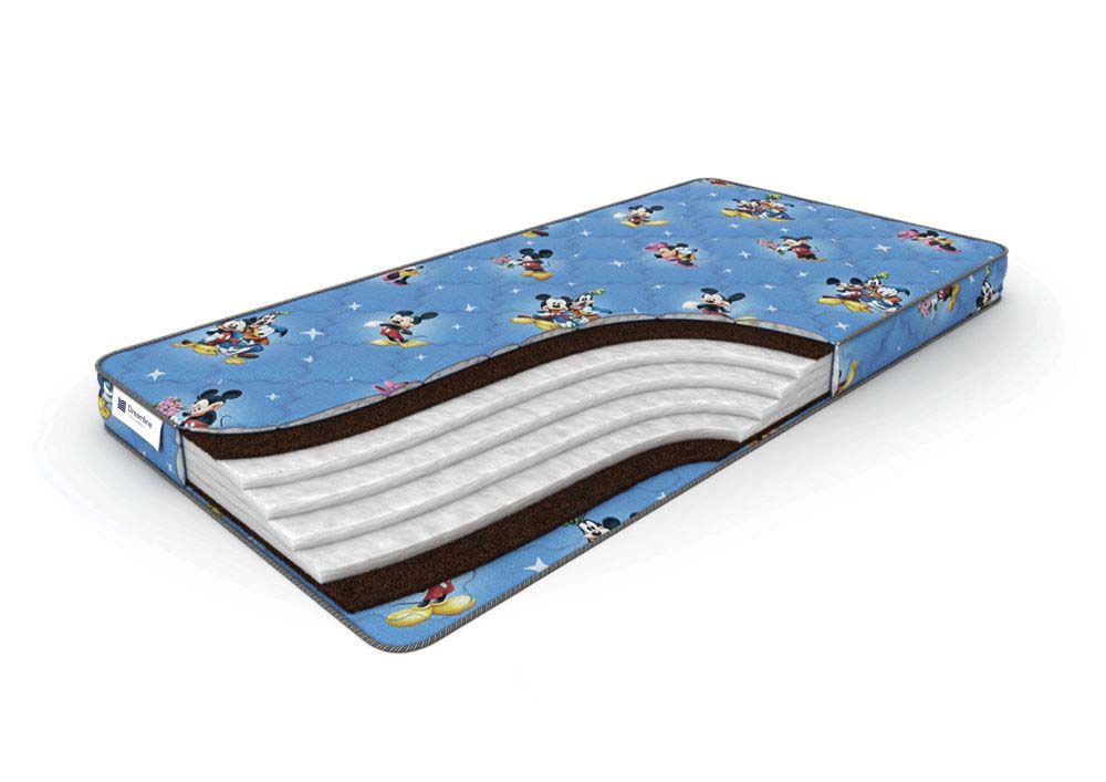 Внутренний наполнитель состоит из четырёх слоёв холлофайбера – современного нетканого материала, часто выполняющего роль заменителя классической эластичной пены. Холлофайбер обладает большей степенью жёсткости, чем пена, что особенно важно для сбалансированного распределения веса тела по поверхности матраса и правильного формирования позвоночника ребёнка.