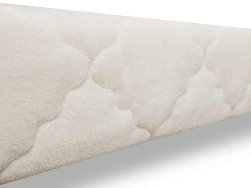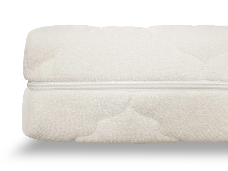 Матрас имеет съемный чехол с молнией, которая позволяет снять его и постирать. Изготовлен из махрового полотна, простеганного на слое гипоаллергенного волокна. Махровая ткань имеет неповторимую природную особенность «свободного дыхания», обладает легким массажным воздействием действием и не вызывает раздражения.