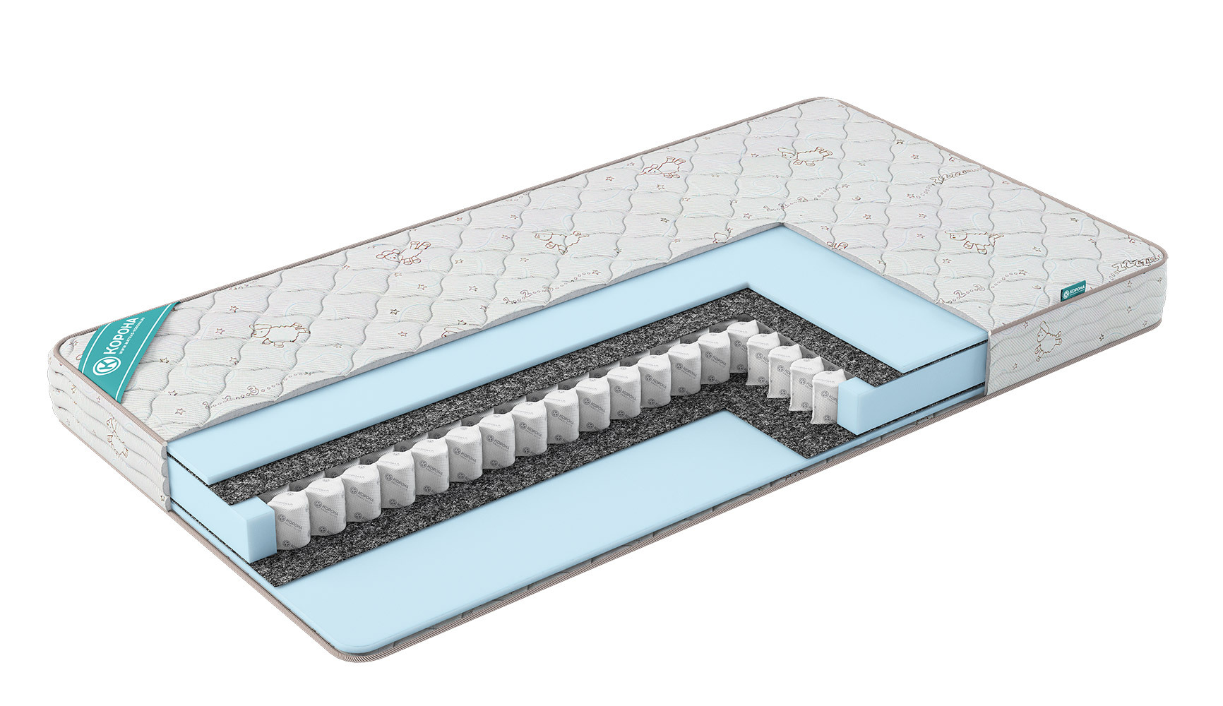 Матрас Junior Smile на основе блока независимых пружин для детей старше 4 лет. В данном матрасе используются пружины высотой 8 см. Они обладают высокой упругостью и выдерживают большие локальные нагрузки. В сочетании с термопрессованным войлоком и пенополиуретаном такой пружинный блок обеспечивает матрасу необходимую жесткость для формирования правильной осанки.