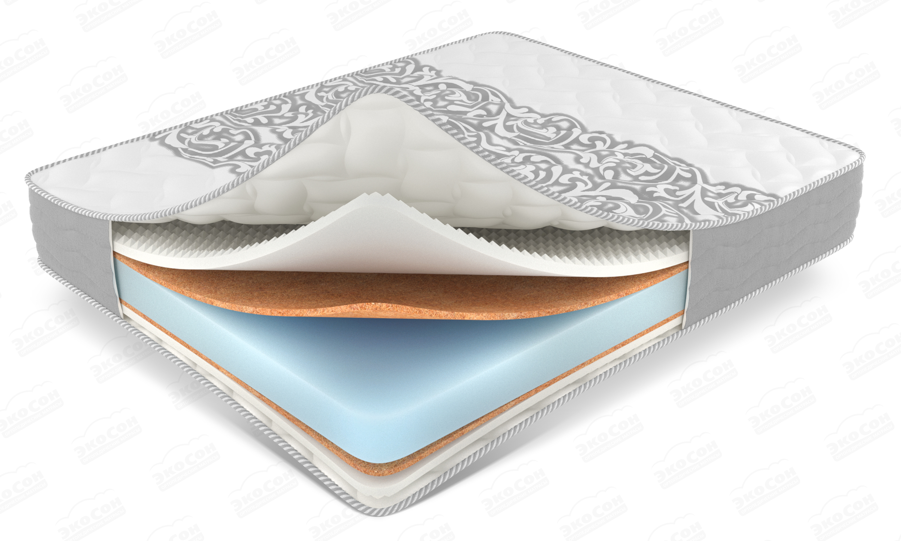 Ортопедическая основа современного матраса Massage не содержит металлических элементов и состоит из блока упругой пены EcoFoam высотой 150 мм. Пенная основа хорошо вентилируется, качественно поддерживает тело в анатомическом положении и не провисает. Обе стороны матраса выстелены слоями жесткой кокосовой койры и массажной пены Relax Foam. Внутренние слои из койры придают матрасу ровности и жесткости. Верхние массажные слои из пены смягчают кокос и добавляют ортопедических свойств.