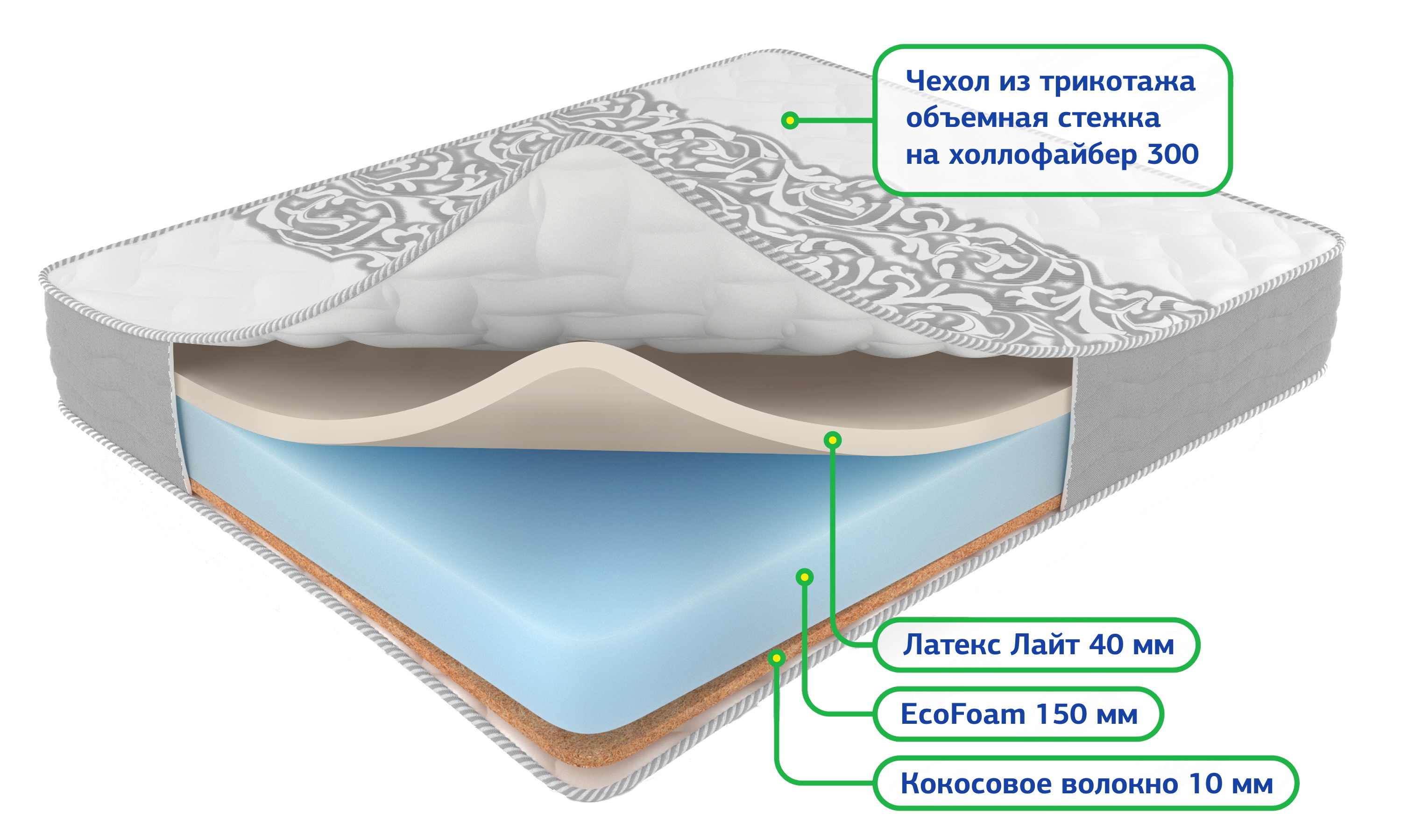 • Вторая сторона выполнена из мягкой пены Латекс лайт.