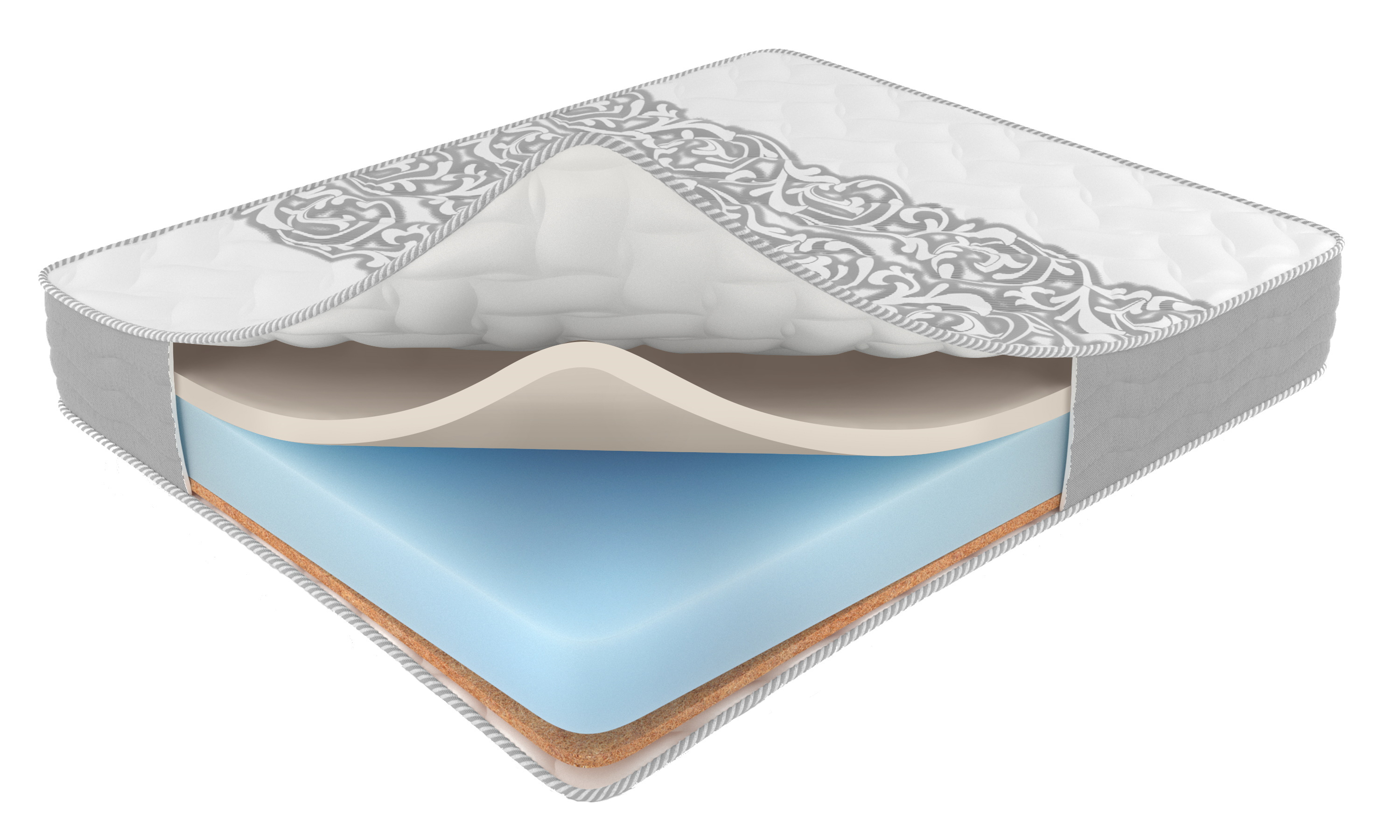 • Одна сторона матраса выполнена кокосовой койры которая придаёт матрасу ровности и жесткости.