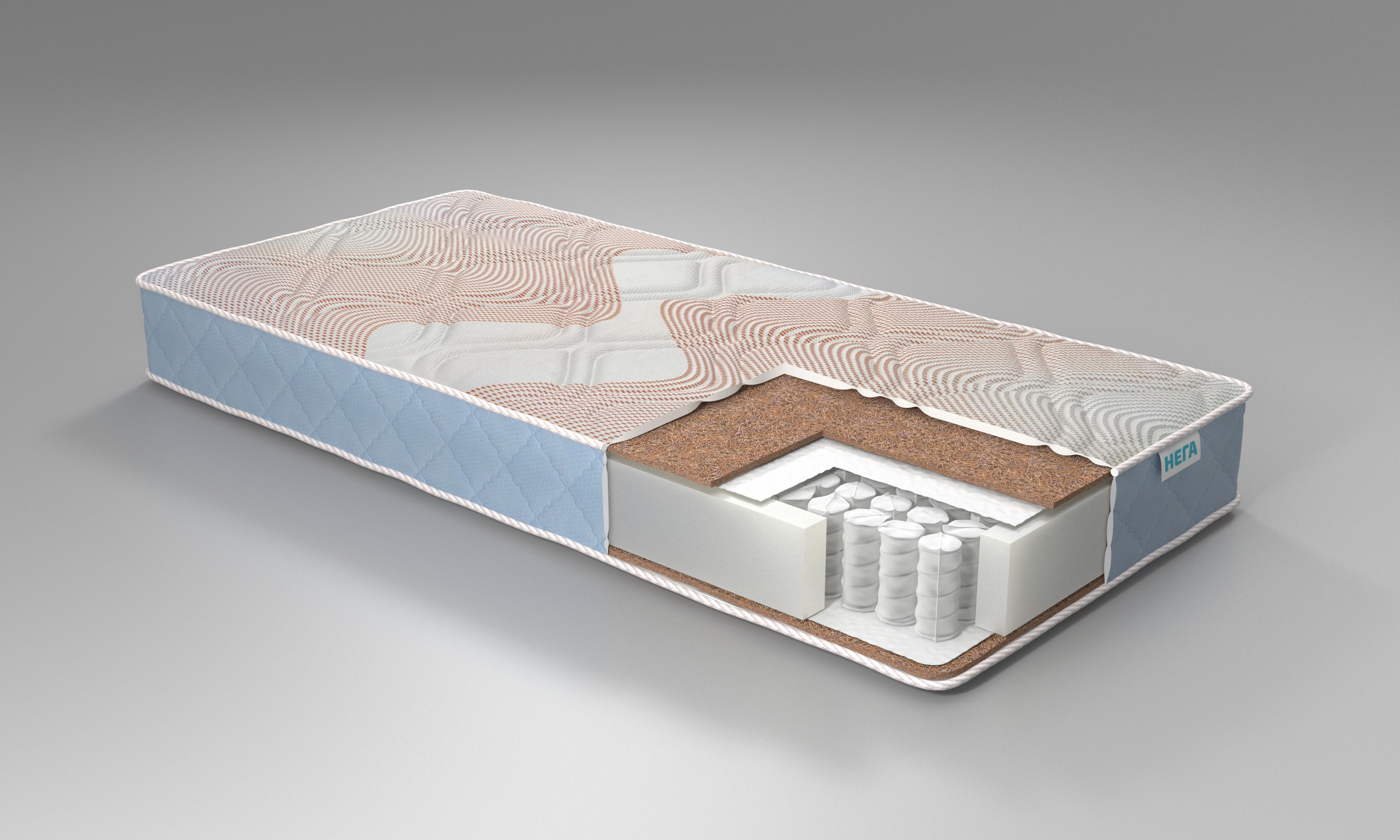 Средняя жесткость матраса достигается сочетанием блока независимых пружин с жестким кокосом и мягким пенополиуретаном. Чехол из синтетического жаккарда.