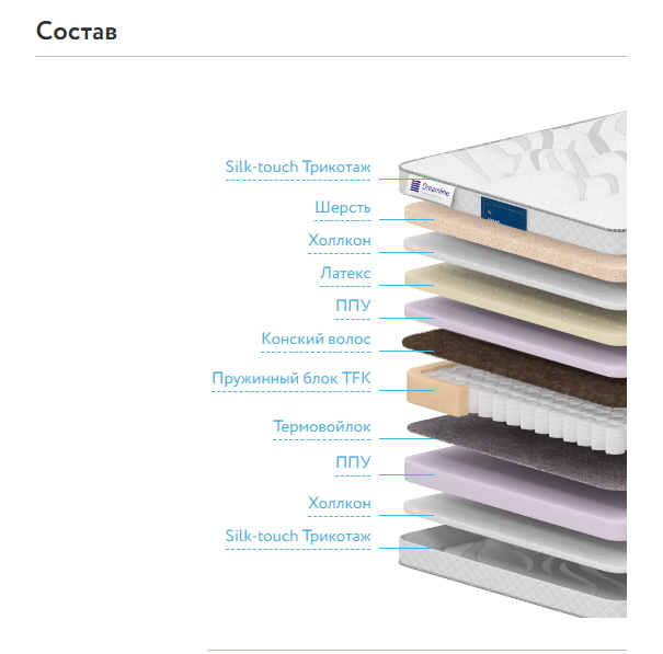Экологически чистые и гипоаллергенные наполнители прекрасно сочетаются и предназначены для людей выбирающих анатомические матрасы. Входящая в состав наполнителей натуральная шерсть ягненка делает эту модель необычайно комфортной.
