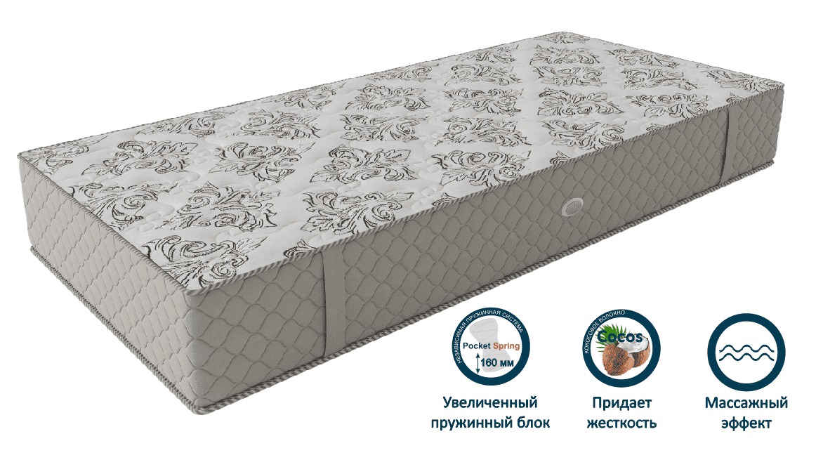 Новинка компании Релакс 2020 года матрас - Гранд Массаж выполнен из натуральных и экологичных материалов. В основе матраса лежит увеличенный блок независимых пружин Pocket Spring – 160мм, обеспечивает оптимальный ортопедический эффект и позволяет создать точечную поддержку позвоночника во время сна. Благодаря ячеистой структуре пены высокой плотности - уменьшает точки давления, оказывая микромассажное действие, что способствует отличному расслаблению всех групп мышц.