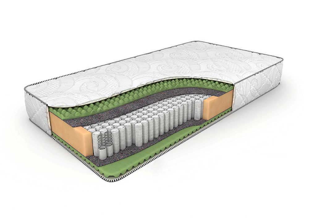 Наполнителем верхнего слоя послужил вспененный Ergo Foam с рельефной поверхностью. За счет этого идет легкий массаж, благоприятно сказывающийся на кровотоке. Жесткость матраса средняя. Обладает точечной эластичностью, хорошо поддерживает позвоночник, принимая анатомическую форму человека и обеспечивая комфортный отдых, спокойный сон.