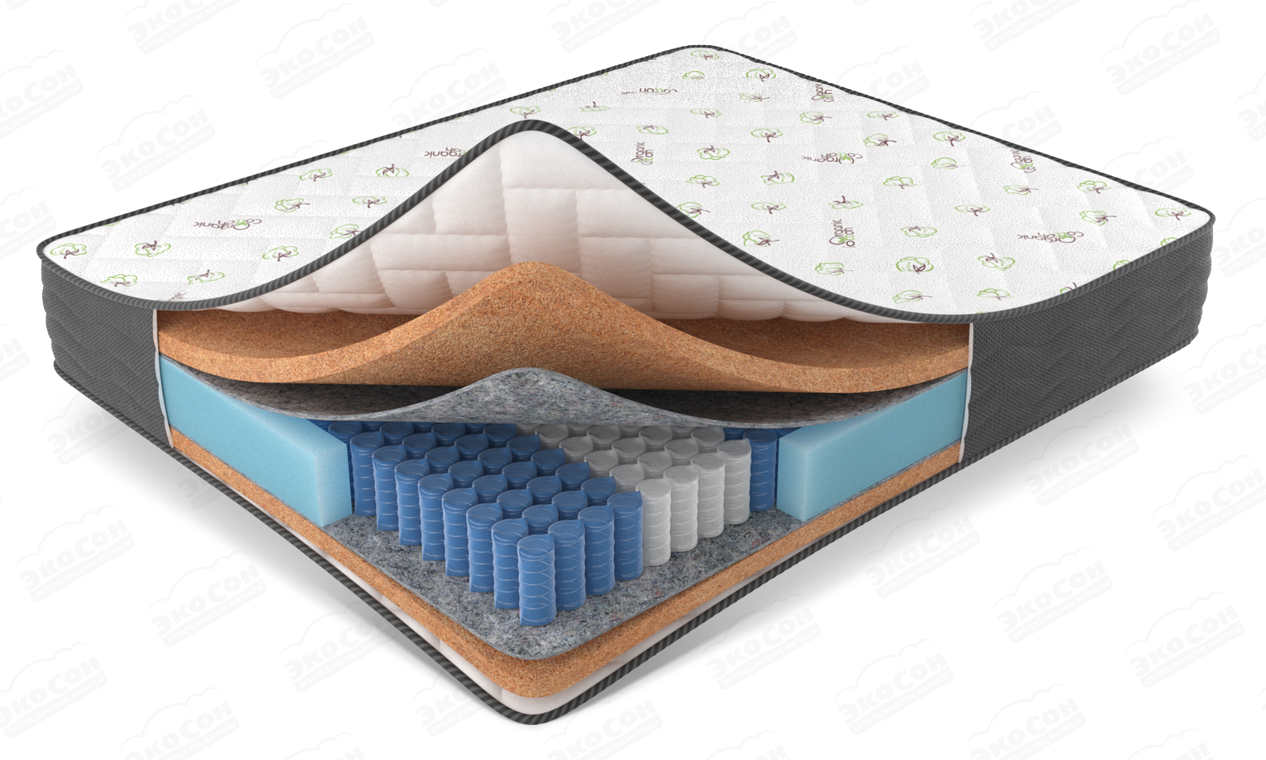 Чехол из хлопкового трикотажа "Cotton Organik" стеганный на Hollcon (300) и Ecofoam (10 мм), высокообъемный борт по периметру 3D Aerosistem