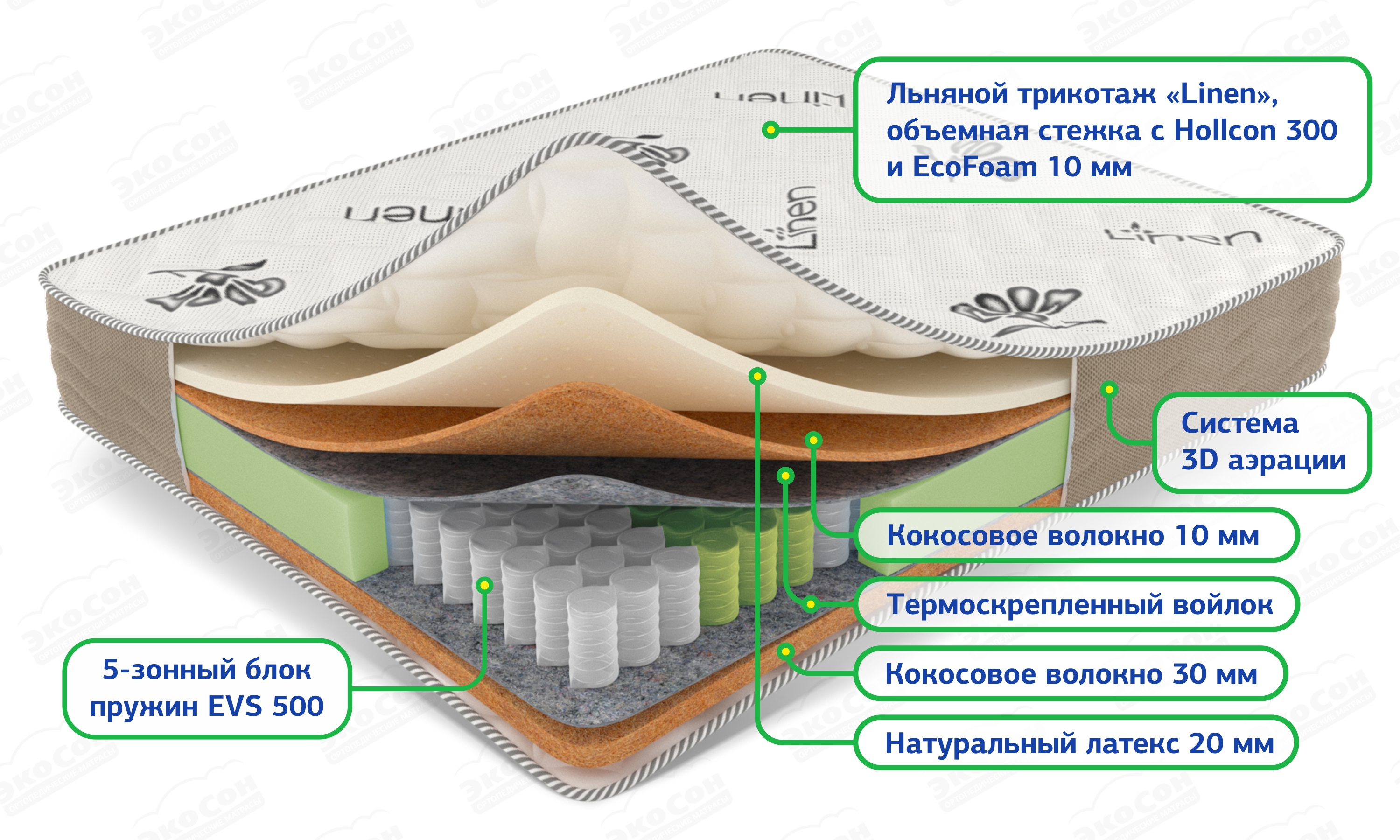 Матрас Комби Плюс двухсторонней жесткости. В матрасе используются только натуральные материалы наполнения, высокого качества, гигиеничности и безопасности. Природный кокос и натуральный латекс, являются классическим сочетанием материалов при производстве матрасов. Наполнители создают упругую поверхность с высокими эксплуатационными характеристиками.
