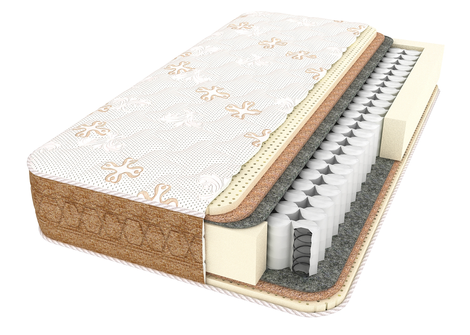 Cредняя жесткость и высокий уровень комфорта достигается за счет использования натуральных материалов и блока независимых пружин. Подойдет людям с обычным весом и весом выше среднего.