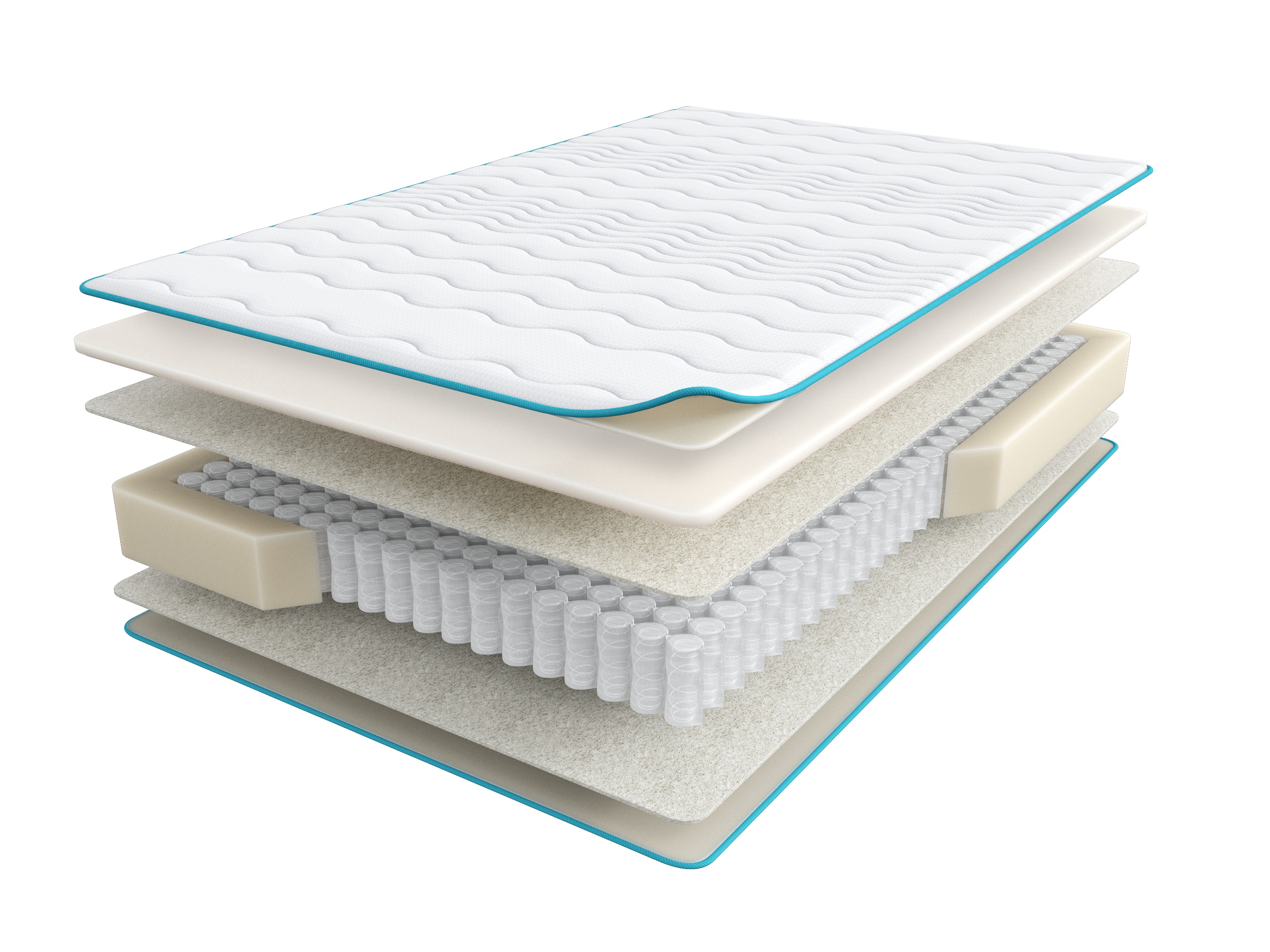 Белый войлок - изготавливается из очищенного хлопкового сырья. Применяется с целью защиты наполнителей от повреждений. Плотный и упругий материал — отличный изолятор (отделяет пружинный блок от верхних настилов). Его использование обеспечивает более равномерное распределение давления пружин на тело спящего, увеличивает комфорт и продлевает срок эксплуатации матраса.